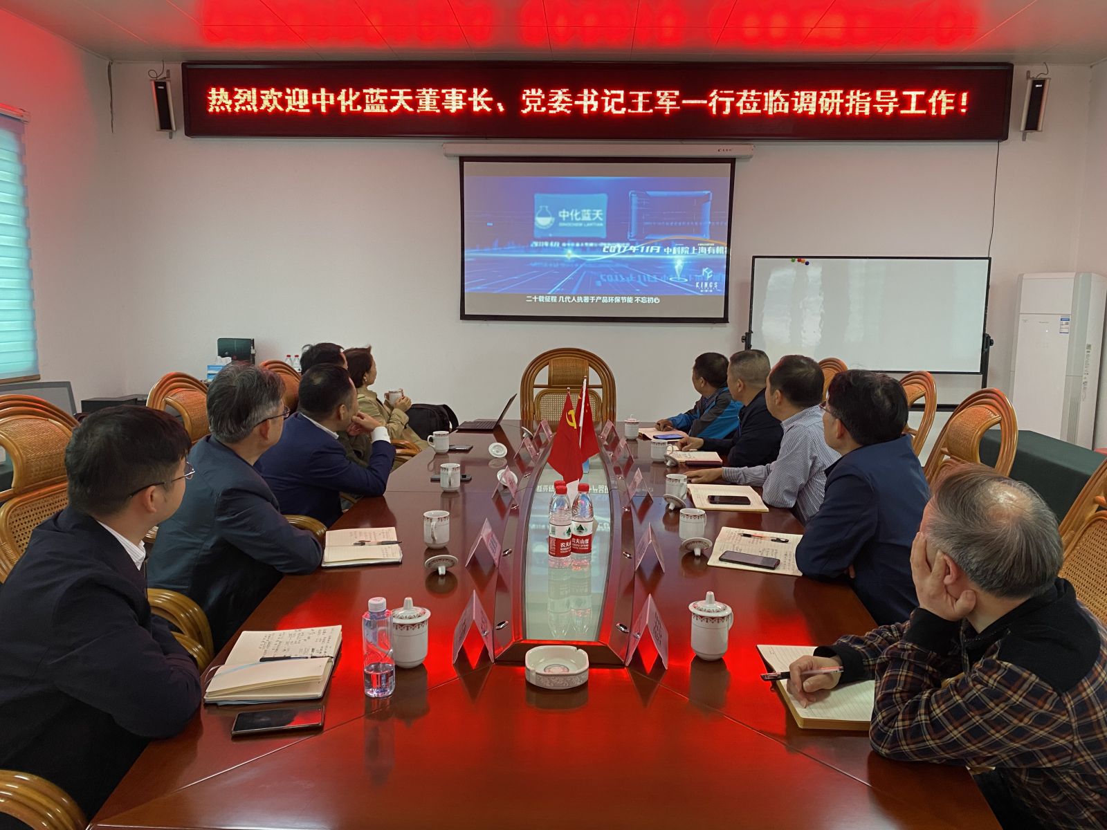 2021年11月3日,公司股東中化藍(lán)天董事長(zhǎng)兼黨委書記王軍、副總經(jīng)理吳康慧等一行5人蒞臨我司調(diào)研指導(dǎo)工作。