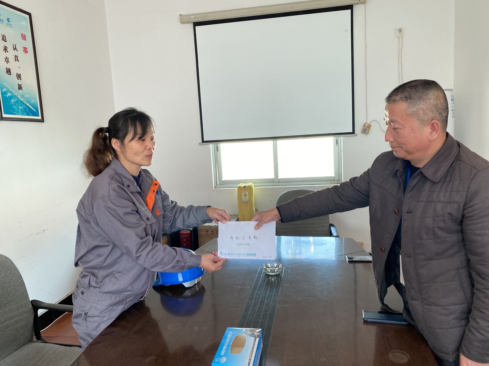 2021年12月24日下午,公司工會(huì)主席陳忠毅、副總吳子亮等一行與毛卓青家屬座談,并將員工捐款交給毛卓青家屬徐秀弟。