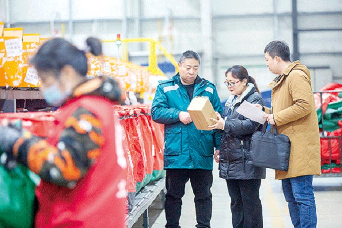 河南省漯河市郾城區(qū)紀(jì)委監(jiān)委緊盯“四風(fēng)”新動(dòng)向、新表現(xiàn),嚴(yán)查快遞送禮等隱形變異行為。圖為該區(qū)紀(jì)檢監(jiān)察干部在轄區(qū)物流園區(qū)核實(shí)相關(guān)問(wèn)題線索。王曉 攝