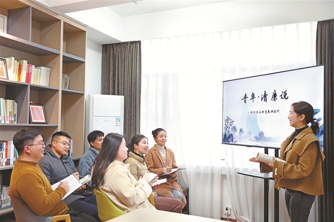 福建省南平市建陽(yáng)區(qū)紀(jì)委監(jiān)委加強(qiáng)對(duì)年輕干部的教育監(jiān)督管理,根據(jù)年輕干部特點(diǎn),選取相關(guān)違紀(jì)違法典型案例進(jìn)行剖析,引導(dǎo)年輕干部引以為戒,自覺筑牢廉潔防線。圖為該區(qū)紀(jì)委監(jiān)委年輕干部在“青年·清廉說”學(xué)習(xí)沙龍上交流心得體會(huì)。黃毓婕 攝