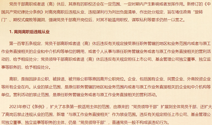每日一課丨黨員干部離崗離職后違規(guī)從業(yè)、違規(guī)謀利的處分規(guī)定