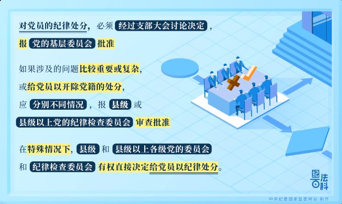 對黨員的紀(jì)律處分,必須經(jīng)過支部大會討論決定,報(bào)黨的基層委員會批準(zhǔn);