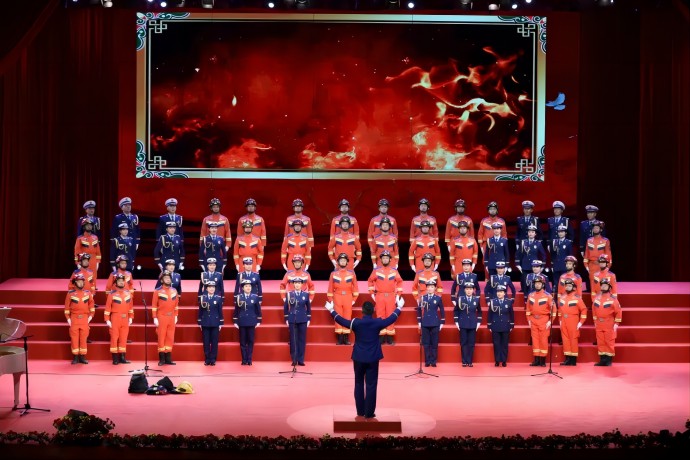 “朋友!你到過黃河嗎?你渡過黃河嗎?你還記得河上的船夫拼著性命和驚濤駭浪搏戰(zhàn)的情景嗎?如果你已經忘掉的話,那么你聽吧!”由58人組成的西藏開投集團參賽隊以一曲《保衛(wèi)黃河》,唱響了黨領導全國人民走過的風雨歷程,唱出了戰(zhàn)勝敵人、奪取勝利的激情。
