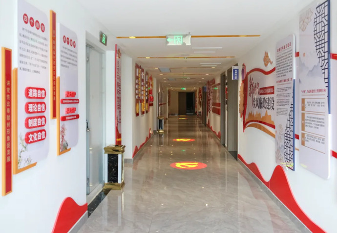 集團(tuán)黨建活動(dòng)陣地位于集團(tuán)辦公樓11樓,占地180㎡,分為黨建文化長(zhǎng)廊、黨員活動(dòng)室、支部會(huì)議室三個(gè)功能區(qū),集黨員學(xué)習(xí)教育、組織生活開展、黨建成果展示等功能于一體。其中,黨建文化長(zhǎng)廊由黨建引領(lǐng)發(fā)展、傳承紅色精神、筑牢戰(zhàn)斗堡壘、挺膺擔(dān)當(dāng)奮進(jìn)、構(gòu)建精神文明、建設(shè)廉政文化六個(gè)部分組成,圖文并茂的形式讓每一位走過長(zhǎng)廊的黨員都能深刻領(lǐng)悟黨建工作的深刻內(nèi)涵。黨員活動(dòng)室包含了組織架構(gòu)展示、榮譽(yù)展示、黨建工作展示、學(xué)習(xí)區(qū)等內(nèi)容,配備桌椅茶幾等休閑設(shè)施,布置溫馨,氛圍濃厚。