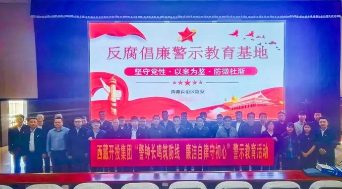 為扎實(shí)開(kāi)展深入貫徹中央八項(xiàng)規(guī)定精神學(xué)習(xí)教育,堅(jiān)定不移推進(jìn)全面從嚴(yán)治黨向縱深發(fā)展,筑牢黨員干部職工拒腐防變思想堤壩,6月26日,西藏開(kāi)投集團(tuán)組織黨員干部職工赴西藏自治區(qū)監(jiān)獄管理局廉政警示教育基地開(kāi)展“警鐘長(zhǎng)鳴筑防線,廉潔自律守初心”警示教育活動(dòng)。集團(tuán)黨委委員、副總經(jīng)理溫勇、尼瑪與集團(tuán)總部、所屬單位黨員干部職工共70余人參加活動(dòng)。