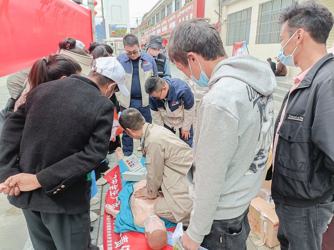 為保證活動(dòng)實(shí)效,嘎堆水電公司提前籌劃、精心準(zhǔn)備了形式多樣的活動(dòng)素材,現(xiàn)場(chǎng)不僅懸掛了“實(shí)施安全生產(chǎn)法 人人事事保安全”的宣傳標(biāo)語(yǔ),還設(shè)置了咨詢臺(tái)、安全展板等,志愿者們向現(xiàn)場(chǎng)群眾講解并發(fā)放了《安全生產(chǎn)月宣傳雨傘、文化帽》《安全知識(shí)進(jìn)萬(wàn)家系列—急救知識(shí)宣傳冊(cè)》等四類共計(jì)150份安全生產(chǎn)政策法規(guī)、應(yīng)急避險(xiǎn)和自救互救方法等方面的宣傳資料。在實(shí)操展示環(huán)節(jié),志愿者用心肺復(fù)蘇模擬器和觸電感受器向現(xiàn)場(chǎng)群眾講解并演示了急救知識(shí)—心肺復(fù)蘇操作方法和體驗(yàn)人體觸電的真實(shí)感受。