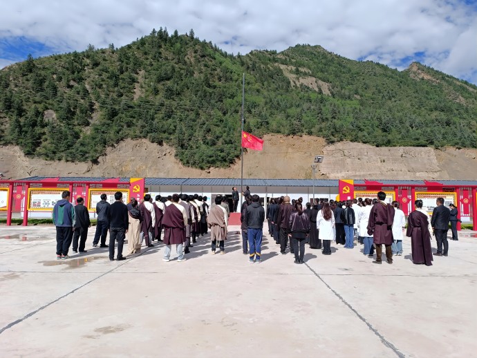 7月1日,果多水電公司黨支部應(yīng)柴維鄉(xiāng)人民政府黨委邀請,參加柴維鄉(xiāng)黨委政府組織的“慶祝中國共產(chǎn)黨成立102周年暨‘七·一’建黨日”活動,活動在莊嚴(yán)的升旗儀式中拉開序幕,全鄉(xiāng)各村居、企事業(yè)單位在場人員全體肅立,伴著莊嚴(yán)神圣的國歌,五星紅旗冉冉升起。