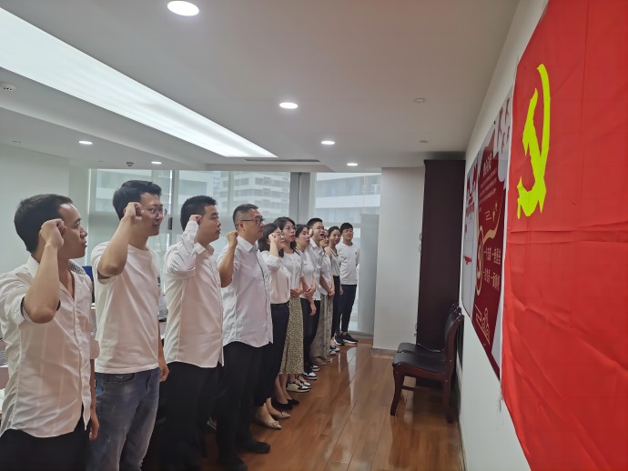 2023年6月30日,咨詢公司第二黨支部組織開展以“重溫入黨誓詞,我與黨旗合影”為主題的七一主題黨日活動。