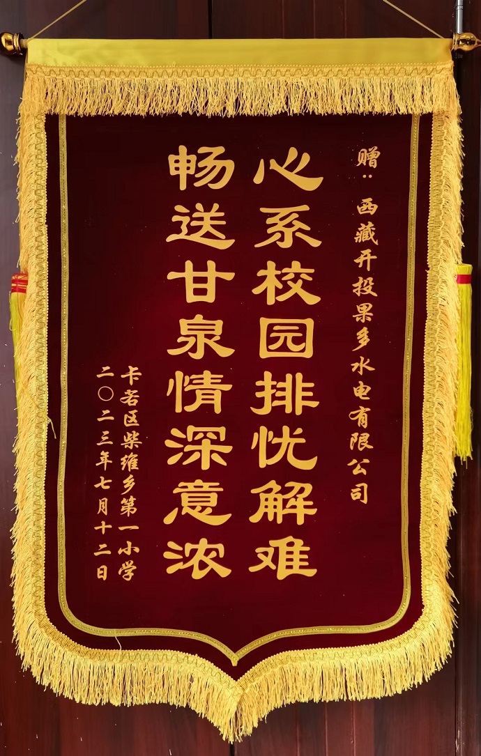 捐贈現(xiàn)場,果多水電公司董事長、總經(jīng)理宋亞東與校長李松林親切交流,了解孩子們學(xué)習(xí)、生活情況,鼓勵(lì)孩子們要好好學(xué)習(xí),保持樂觀向上的心態(tài),健康快樂成長。作為受助方,李松林向果多水電公司贈送“心系校園排憂解難 暢送甘泉情深意濃”錦旗以表謝意。他表示,愛心無價(jià),情誼永恒,全校師生將把這份關(guān)愛化作砥礪前行的動力,努力提高柴維鄉(xiāng)教育教學(xué)質(zhì)量,培養(yǎng)出德、智、體、美、勞全面發(fā)展的新時(shí)代好少年。