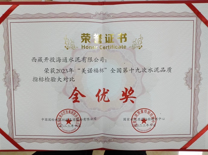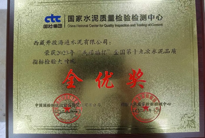 近期,西藏開投海通水泥有限公司獲得“美諾福杯”全國第十九次水泥品質(zhì)指標(biāo)檢驗(yàn)大對(duì)“全優(yōu)獎(jiǎng)”。