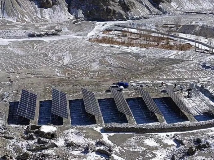 據(jù)了解,該示范項目位于阿里地區(qū)扎達縣底雅鄉(xiāng)魯巴村,地處偏遠的邊境區(qū)域,海拔3869米,基礎設施建設非常薄弱,無市電供應。之前村民用電主要依靠小型光伏戶用電源設備,僅能滿足日常照明及通訊設備的充電,電力保障能力十分有限。該項目工期緊張,建設者們克服高寒高海拔、設備采購困難、人員組織困難、大雪封路等重重困難,在短短的2個月內(nèi)完成光伏、儲能、變電場區(qū)施工安裝,和輸電線路架設及系統(tǒng)發(fā)電調(diào)試工作,在春節(jié)藏歷新年前順利實現(xiàn)投運。目前,該項目在光照充足條件下可做到24小時無間斷運行供電,保障了當?shù)卮迕袢旌蛴秒娦枨蟆?/div>