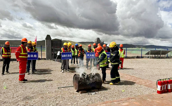 此次演習(xí)邀請了那曲市安多縣消防救援大隊(duì)防火參謀進(jìn)行消防知識(shí)培訓(xùn)及實(shí)際操作教學(xué)。培訓(xùn)過程中,首先觀看了近年來多起施工現(xiàn)場火災(zāi)典型案例,并對(duì)案例進(jìn)行了深刻剖析,明晰了火災(zāi)事故中相應(yīng)人員所承擔(dān)的法律責(zé)任,同時(shí)講解了預(yù)防、滅火和自救逃生方法。接著,消防隊(duì)通過以練代訓(xùn)的方式,讓參訓(xùn)人員上手實(shí)操,全面了解干粉滅火器的使用方法。