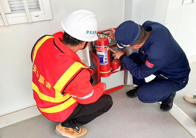 演練結(jié)束后,消防人員帶領(lǐng)項(xiàng)目管理人員對(duì)辦公區(qū)、宿舍、食堂等區(qū)域進(jìn)行防火安全巡查,通過逐個(gè)檢查和詳細(xì)講解,進(jìn)一步排除火災(zāi)安全隱患。