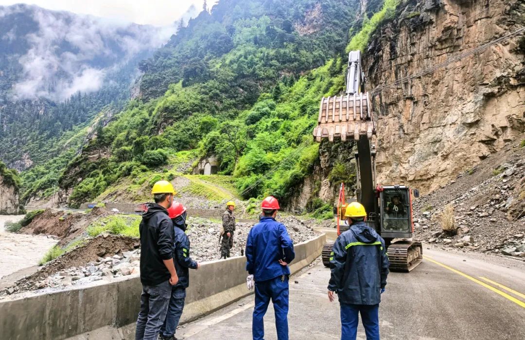 面對這一緊急情況,金橋水電站迅速啟動防洪度汛應急預案,在雨中開展緊急修復工作。現(xiàn)場工作人員身著雨衣,腳踩泥濘,專業(yè)技術人員對存在問題的廠壩線進行評估,制定出修復方案,工程技術人員也對隱患部位進行勘察和評估,全力應對輸入桿的扶正、填土、夯實等一系列操作。雨中各種工程設備轟鳴作響,搶修人員們緊密配合,爭分奪秒地推進修復工作。