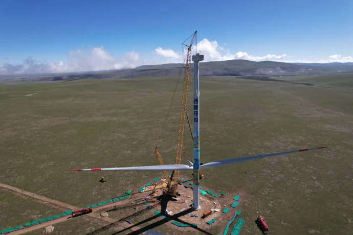 色尼區(qū)曲果嘎姆風(fēng)電項目是自治區(qū)2024年度重點保供項目,也是目前西藏在建最大的風(fēng)力發(fā)電項目。“該項目總投資約13億元,計劃安裝40臺風(fēng)力發(fā)電機組,總裝機容量200MW,配置40MW/160MWh構(gòu)網(wǎng)型儲能,建成并網(wǎng)后預(yù)計年上網(wǎng)電量超4.36億千瓦時,相當(dāng)于每年可節(jié)約標(biāo)煤13.15萬噸,減少二氧化碳排放約35.94萬噸。”西藏開投那曲河水電公司副總經(jīng)理、色尼區(qū)風(fēng)電項目指揮長郭忠敏介紹。