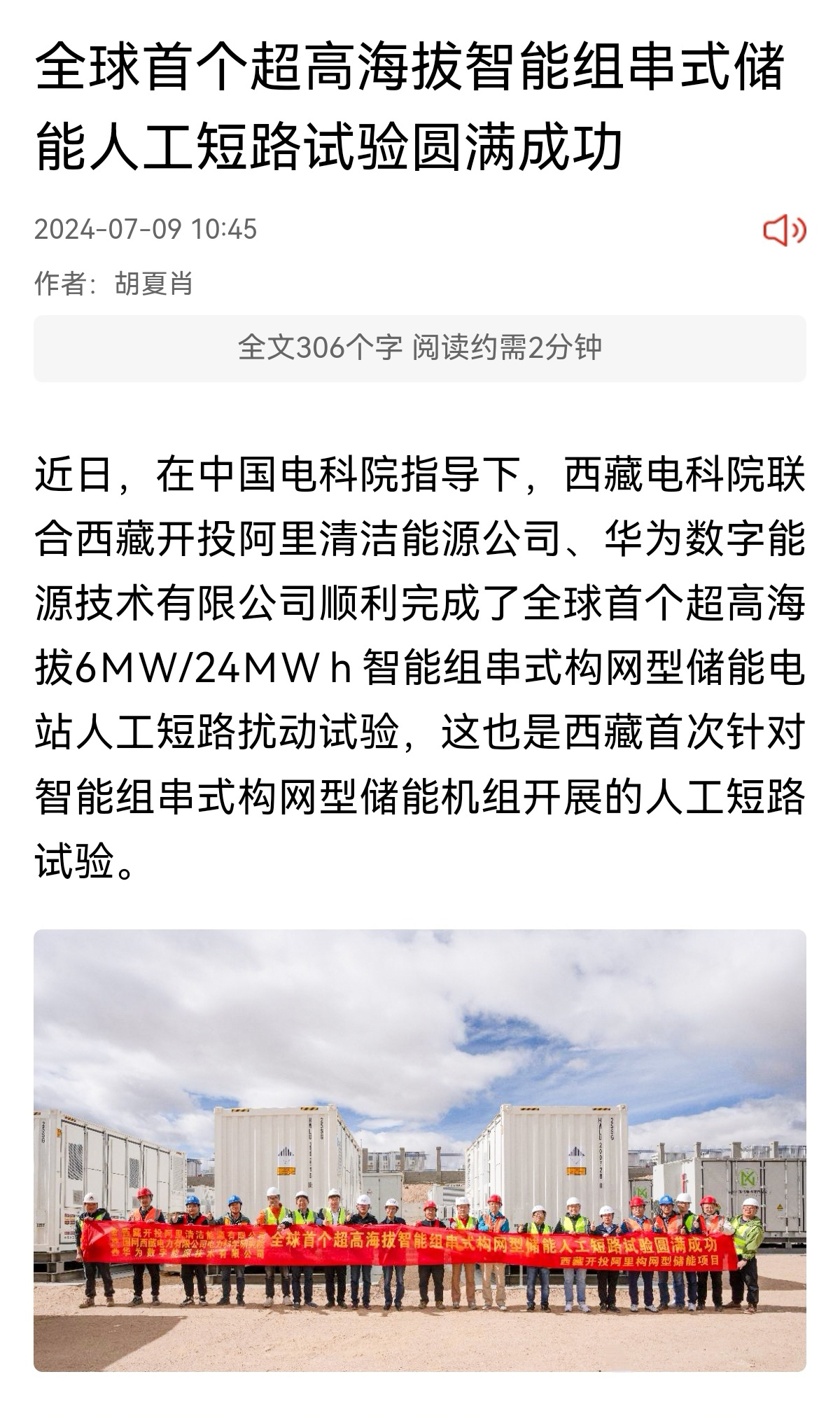 媒體報(bào)道丨全球首個(gè)超高海拔智能組串式儲(chǔ)能人工短路試驗(yàn)圓滿(mǎn)成功