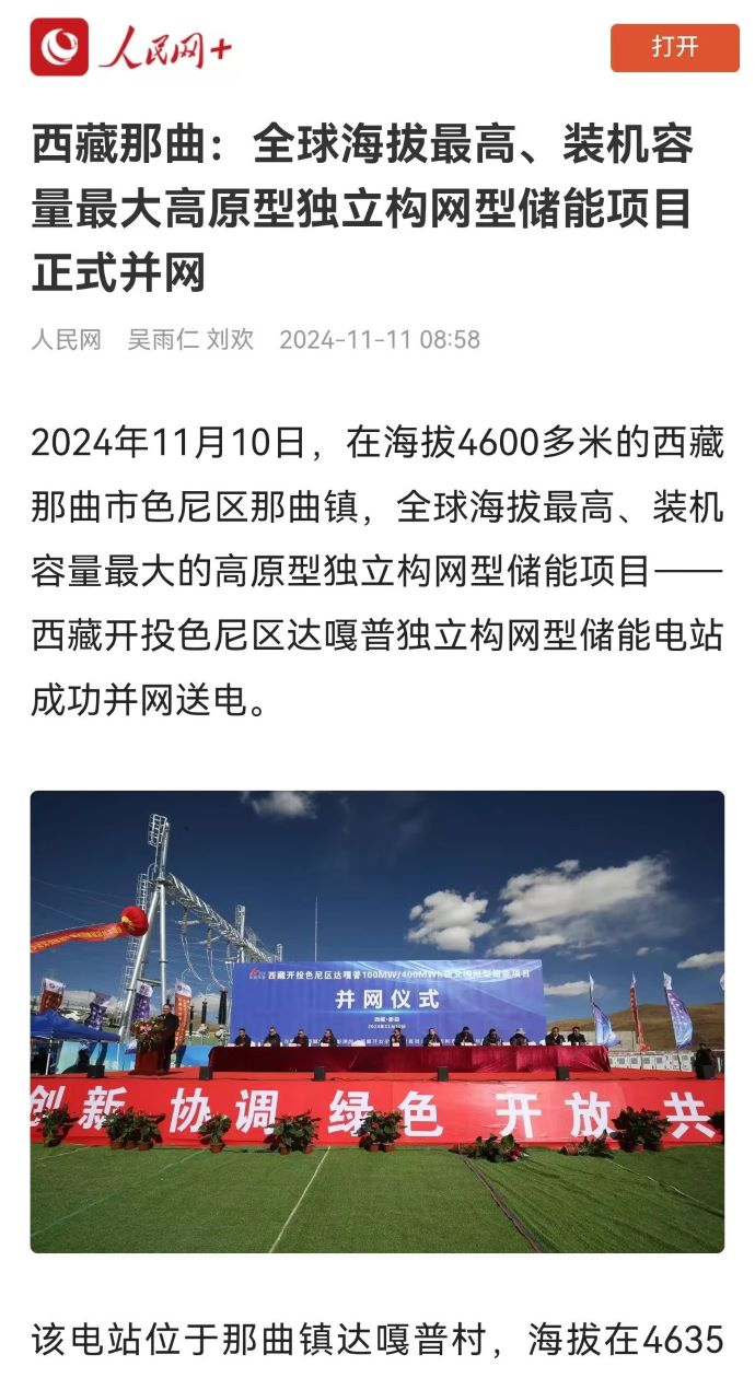 實力刷屏!各級媒體聚焦報道西藏開投色尼區(qū)獨立構(gòu)網(wǎng)型儲能項目
