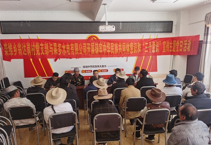 6月25日,果多水電公司黨支部結(jié)合習(xí)近平新時(shí)代中國(guó)特色社會(huì)主義思想主題教育活動(dòng)與柴維鄉(xiāng)翁達(dá)崗村黨支部聯(lián)合開(kāi)展了以“鑄牢中華民族共同體意識(shí)和‘三個(gè)意識(shí)’”為主題的黨日活動(dòng)。