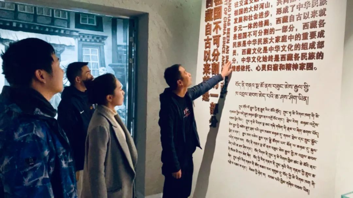 在博物館內(nèi),黨員干部參觀了“雪域長(zhǎng)歌—西藏歷史與文化展”。一張張感人的圖片、一件件珍貴的文物和一個(gè)個(gè)震撼人心的故事,展現(xiàn)了西藏經(jīng)濟(jì)社會(huì)發(fā)展的巨大成就,特別是習(xí)近平總書記治邊穩(wěn)藏重要論述的成功實(shí)踐,教育激勵(lì)全區(qū)各族干部群眾更加緊密地團(tuán)結(jié)在以習(xí)近平同志為核心的黨中央周圍,不忘初心、牢記使命、永遠(yuǎn)奮斗,奮力譜寫好中華民族偉大復(fù)興中國(guó)夢(mèng)的西藏篇章。