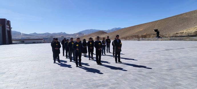 全體干部職工向革命烈士紀(jì)念碑深鞠躬、默哀、敬獻(xiàn)鮮花,表達(dá)了對(duì)建設(shè)社會(huì)主義新西藏犧牲的烈士先輩的無限敬仰與哀思。