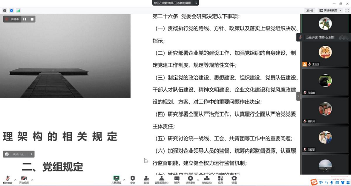 培訓(xùn)圍繞集團(tuán)公司章程規(guī)定、部門職責(zé)、三重一大規(guī)定三個方面作了系統(tǒng)講解,著重從合法、合規(guī)性方面進(jìn)行了分析。此次培訓(xùn),有效促進(jìn)了制度建設(shè)工作的法治化和規(guī)范化。下一步,集團(tuán)公司將結(jié)合上級要求,持續(xù)加強(qiáng)制度管理體系的建設(shè),優(yōu)化管理流程,筑牢集團(tuán)公司高質(zhì)量發(fā)展基石。