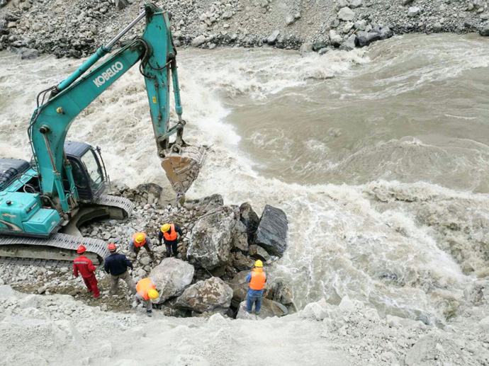 災(zāi)害發(fā)生后,金橋公司第一時(shí)間啟動(dòng)了防洪度汛應(yīng)急方案,主要領(lǐng)導(dǎo)深入一線,全力組織公司員工及各參建單位開展搶修,現(xiàn)場及時(shí)解決搶修工作中遇到的難題。同時(shí)嘉黎縣黨委政府積極應(yīng)對,及時(shí)處置災(zāi)后各項(xiàng)工作,一方面積極做好災(zāi)情的核災(zāi)上報(bào)和受災(zāi)群眾的安撫疏導(dǎo)工作,另一方面積極發(fā)動(dòng)和帶領(lǐng)公安干警、消防官兵、養(yǎng)護(hù)段工作人員、廣大群眾開展道路搶通維護(hù)工作。
