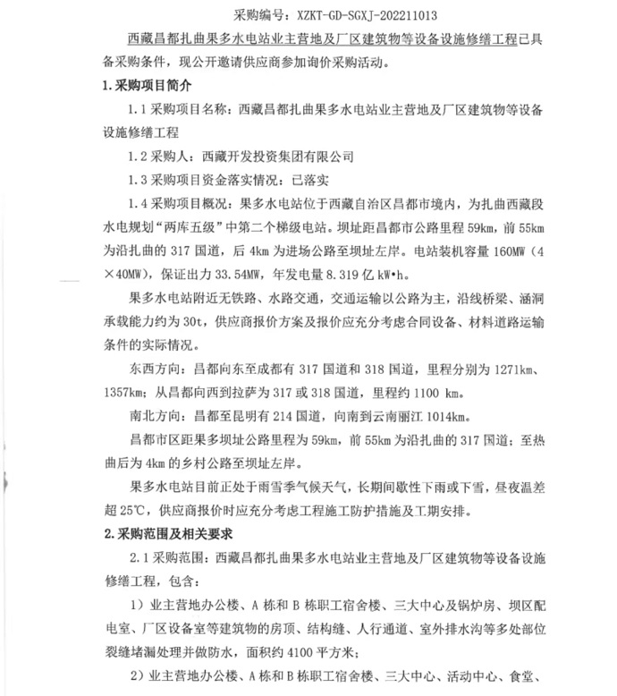 西藏昌都扎曲果多水電站業(yè)主營(yíng)地及廠區(qū)建筑物等設(shè)備設(shè)施