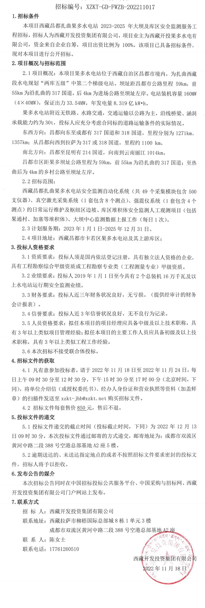 西藏昌都扎曲果多水電站2023-2025年大壩及庫區(qū)安全監(jiān)測