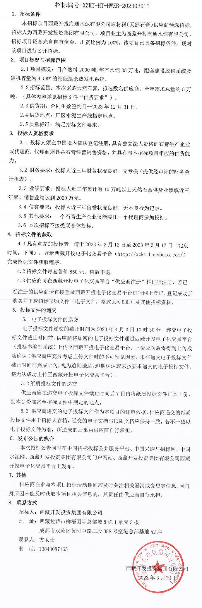 西藏開投海通水泥有限公司原材料(天然石膏)