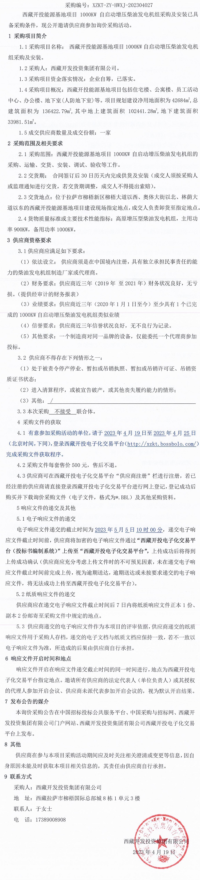 發(fā)電機(jī)組采購(gòu)及安裝采購(gòu)公示