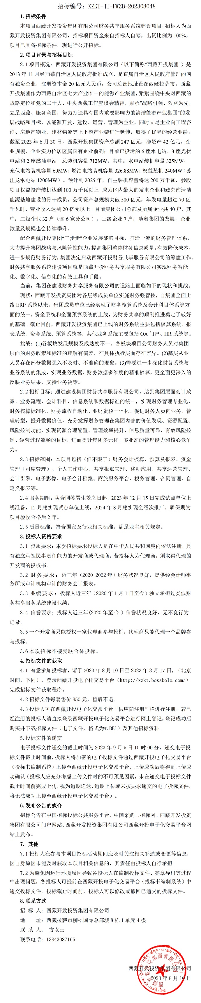 西藏開發(fā)投資集團有限公司財務共享服務系統(tǒng)建設項目