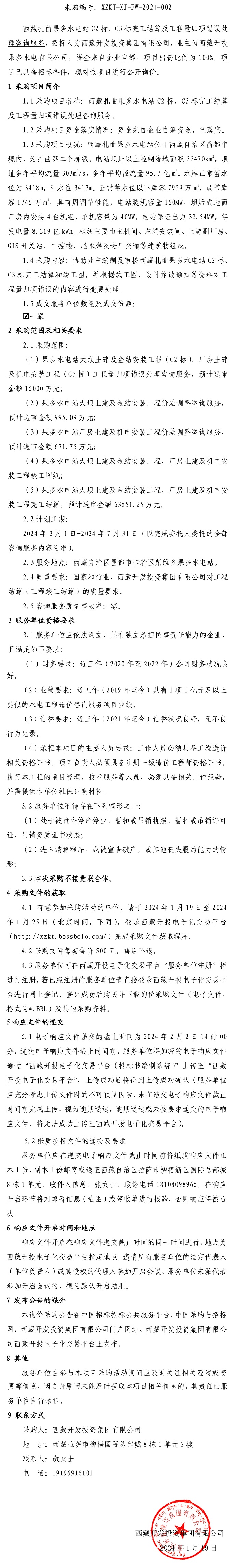 西藏扎曲果多水電站 C2 標(biāo)、C3 標(biāo)完工結(jié)算及工程量歸項錯誤處理咨詢服務(wù)詢價采購公告