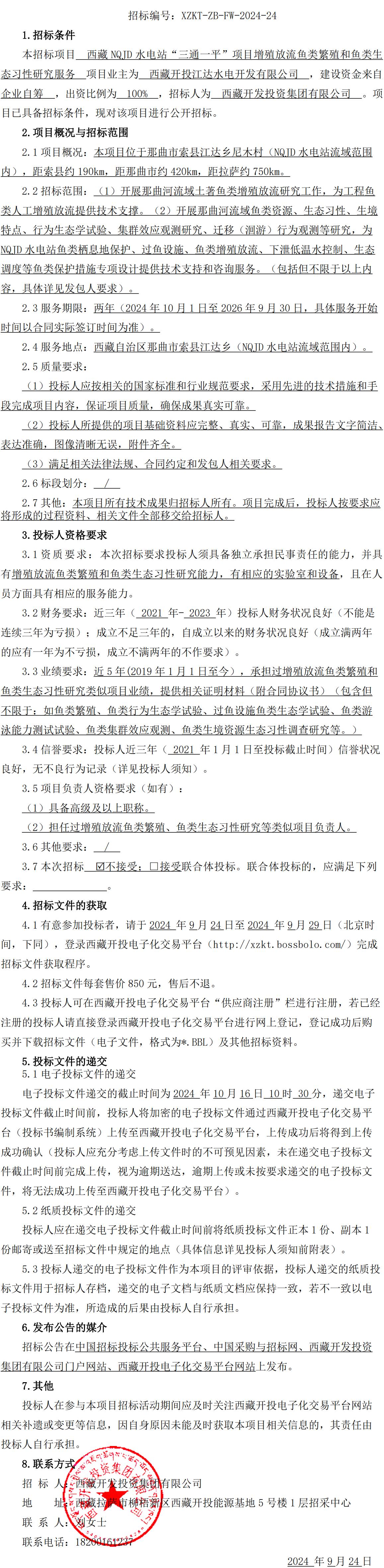 西藏 NQJD 水電站“三通一平”項目增殖放流魚類繁殖和魚類生態(tài)習性研究服務(wù)招標公告