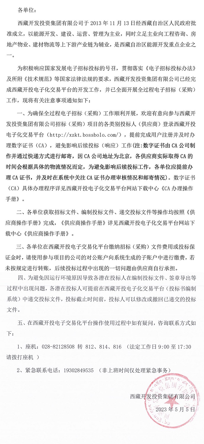 關(guān)于西藏開投電子化交易平臺操作使用方面注意事項的通知