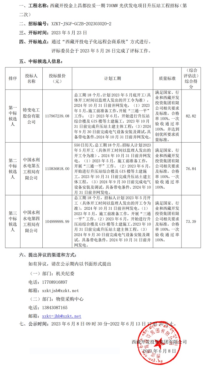 中標(biāo)候選人公示