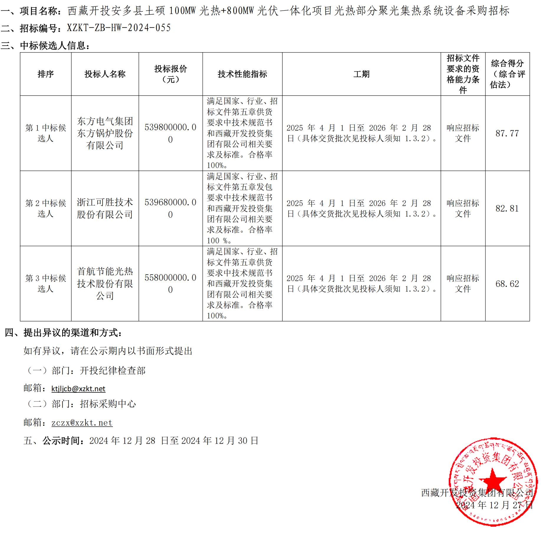 中標(biāo)候選人公示